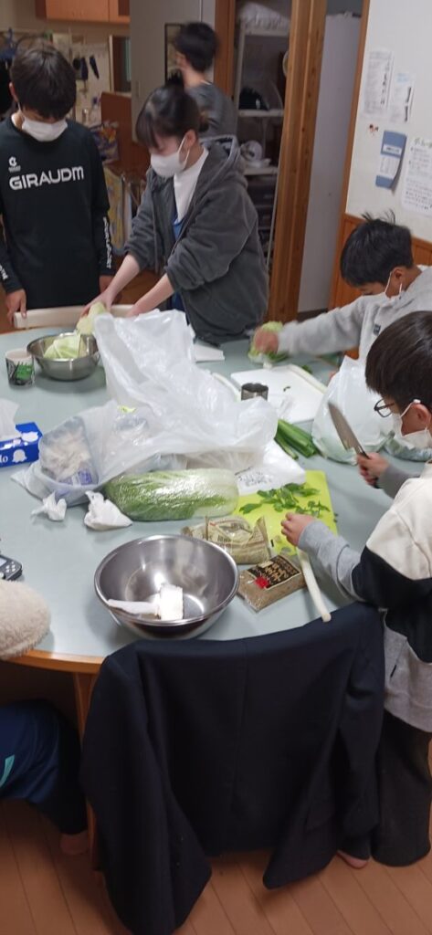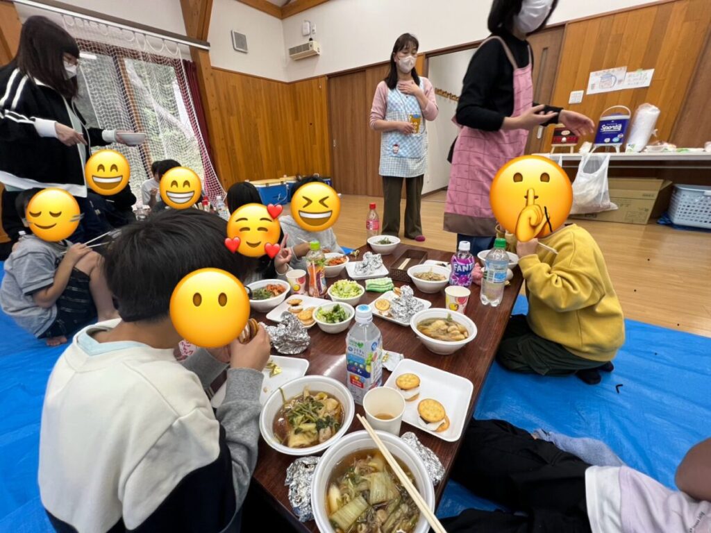 2025年10月26日 活動日誌 今年の鍋は何にする? 秋田と言えばやはり「きりたんぽ鍋」です。郷土食を大事に、また 感恩講を出た後でも、感恩講で食べた味を思い出してもらいたいという思いも込めて 子どもたちみんなできりたんぽ鍋を作りました。 給食さんの手作りチーズケーキとガナッシュ、また、マシュマロを炭火で焼き、クッキーの間にチョコと一緒に挟んだスイーツ🍫焼き芋バター等々お腹いっぱい食べました。 食べた後は、レクレーション💛 子どもVS職員の対決。同じ答えになるとポイントゲット!楽しかったし美味しい一日でした。 以前の記事へ:ピカピカのトイレ